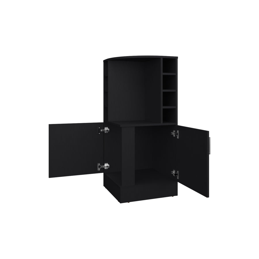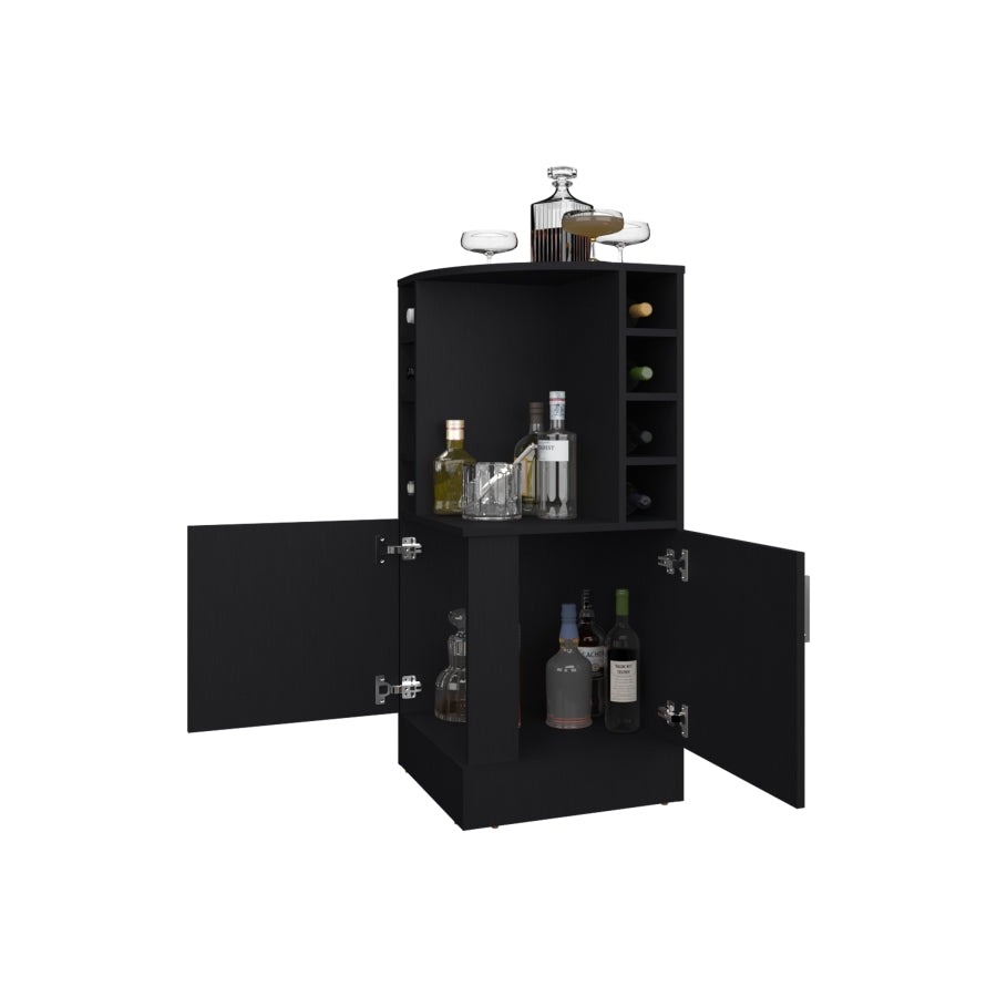 Toyei Corner Bar Cabinet with Bottle Rack, Open Shelves, and Hidden Storage, Black