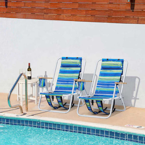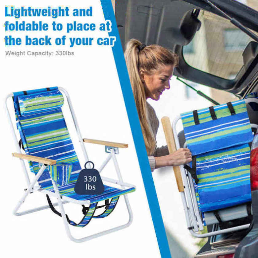 Folding Beach Chair, 4 Position Portable Backpack Foldable Camping Chair with Headrest Cup Holder 96022358
