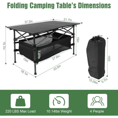 Folding Camp Table with Large Storage and Carrying Bags, for Indoor, Outdoor, Picnic, Party, 37"x 34227674
