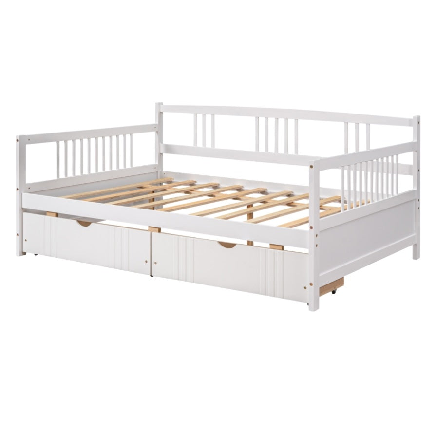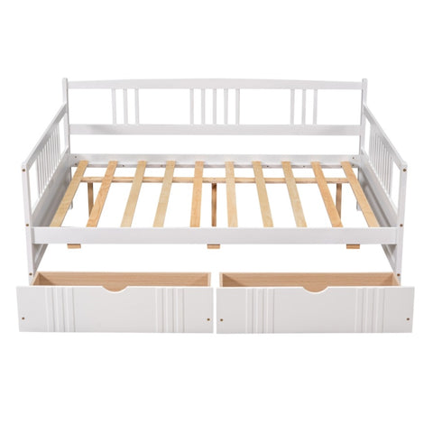 Full Size Daybed Wood Bed with Two Drawers,White 67032635