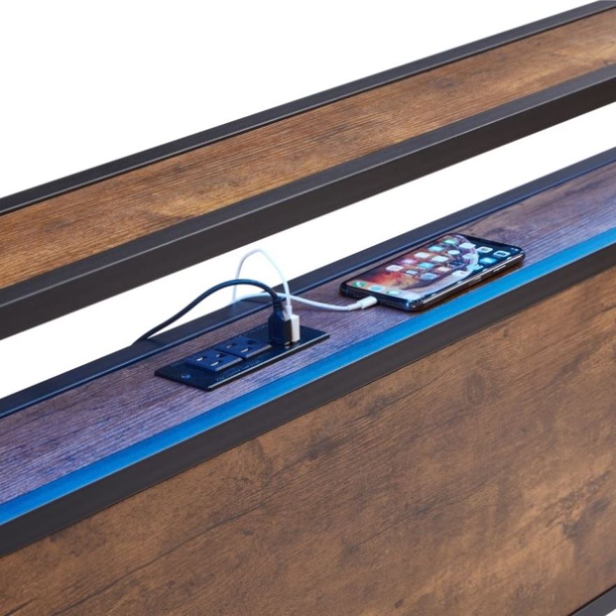 Full Size Metal Platform Bed Frame with Wooden Headboard and Footboard with USB LINER, LED Lights, W311134460