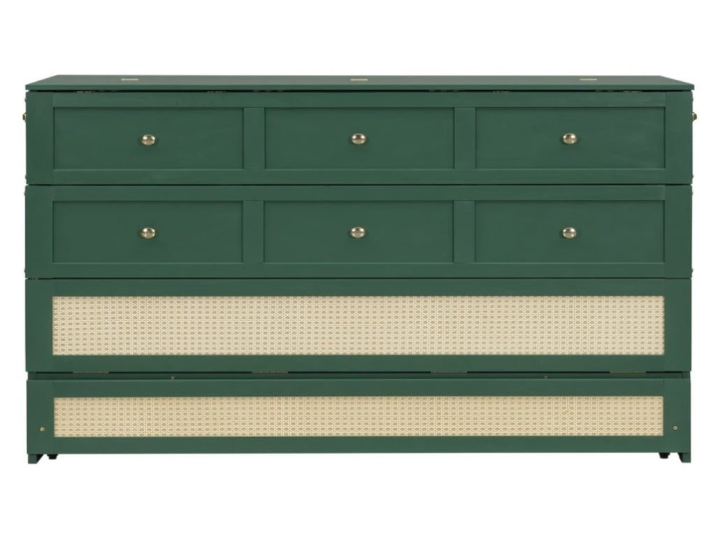 [Classic and Stylish Fusion] The Murphy bed features a unique front design, a classic and elegant upper false drawer, and a stylish rattan lower bed. Available in white, gray, brown, and green, it complements any decor and adds a touch of sophistication to your living space.
