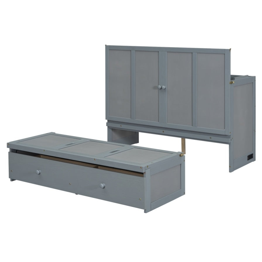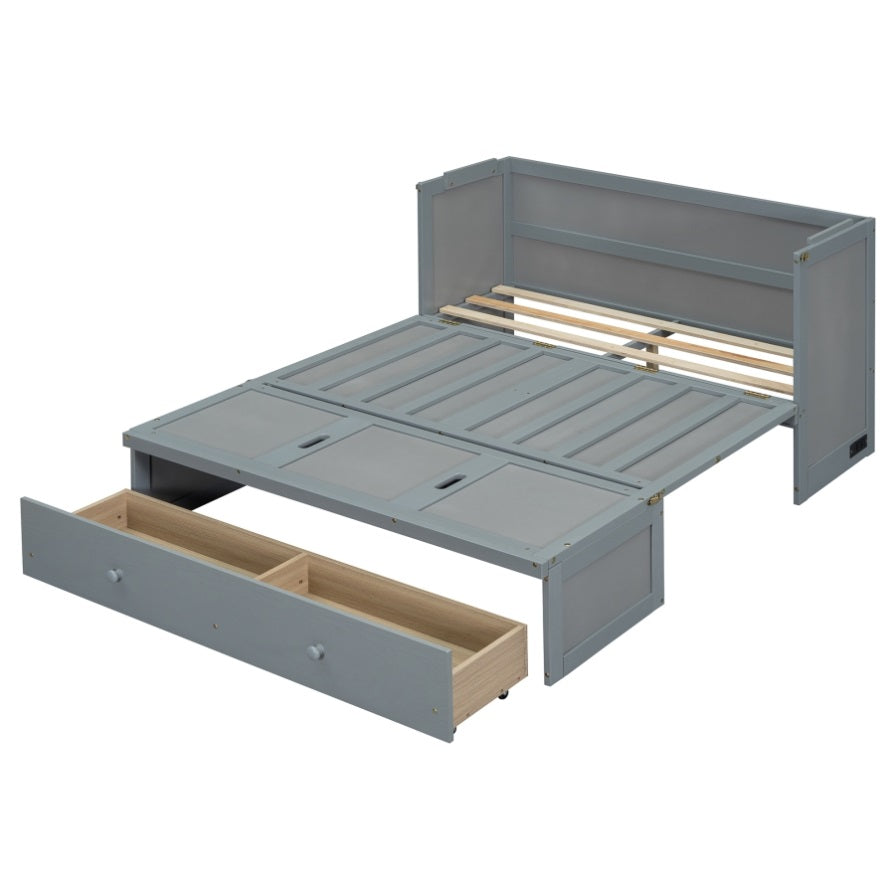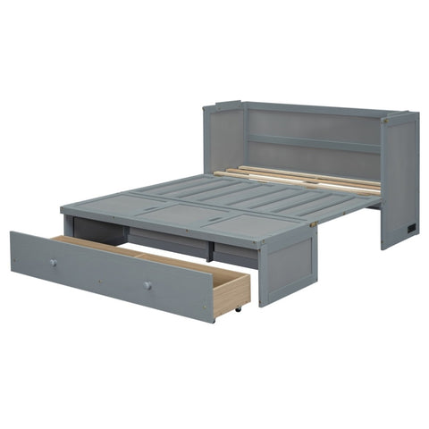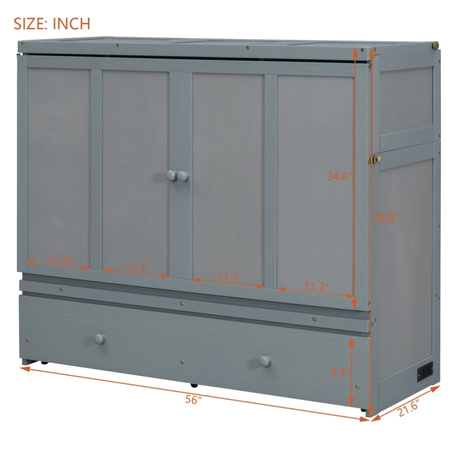 Full Size Murphy Bed with USB Port and a Large Drawer, Gray N708P205903E