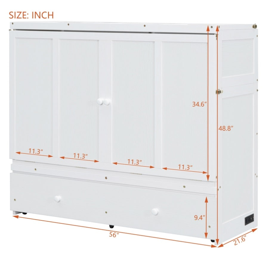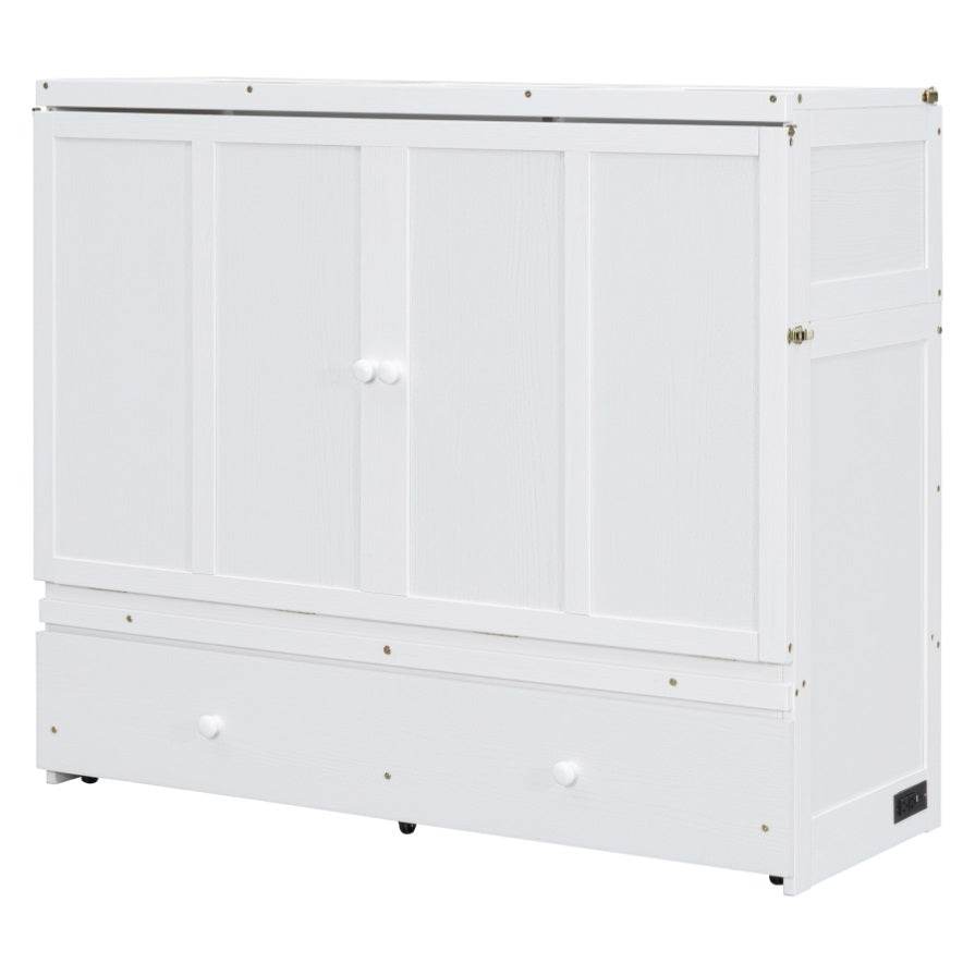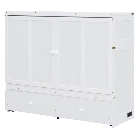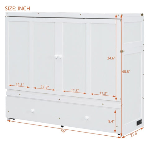 Full Size Murphy Bed with USB Port and a Large Drawer, White N708P205903K