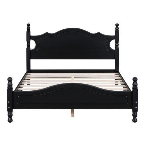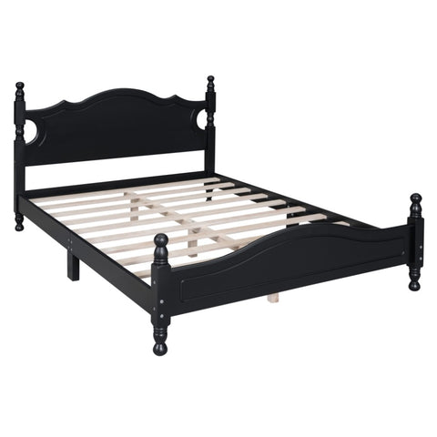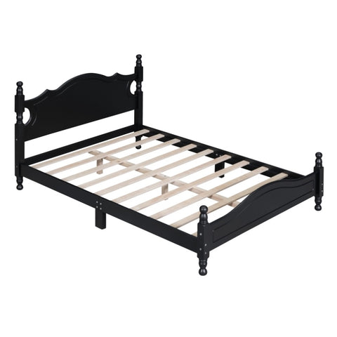 Full Size Wood Platform Bed Frame,Retro Style Platform Bed with Wooden Slat Support,Black WF310129AAB
