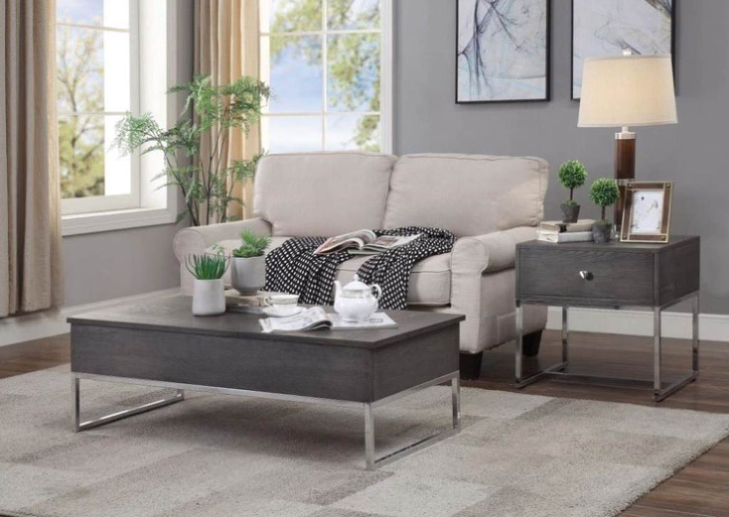 Grey Oak and Chrome Coffee Table with Lift Top B062P189218