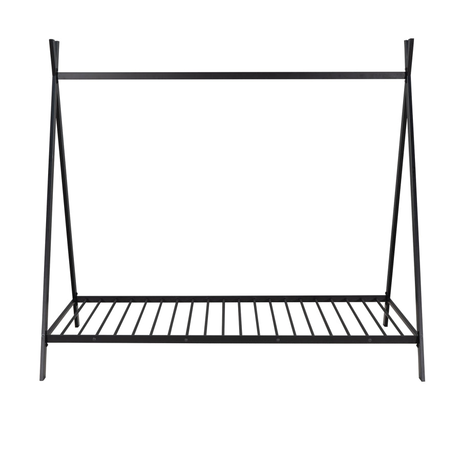 House Bed Tent Bed Frame Twin Size Metal Floor Play House Bed with Slat for Kids Girls Boys No Box