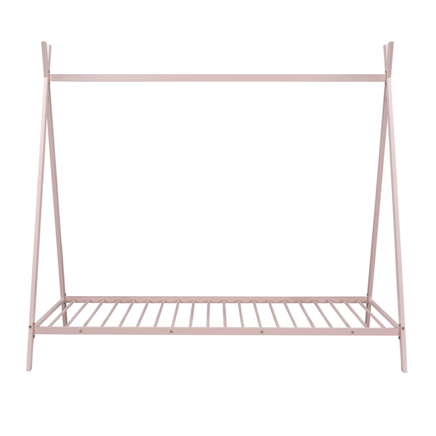 House Bed Tent Bed Frame Twin Size Metal Floor Play House Bed with Slat for Kids Girls Boys