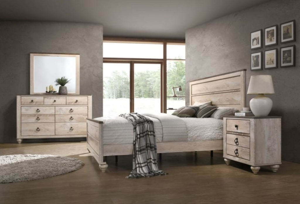Imerland Contemporary White Wash Finish 4-Piece Bedroom Set-King Bed, Dresser, Mirror and Nightstand