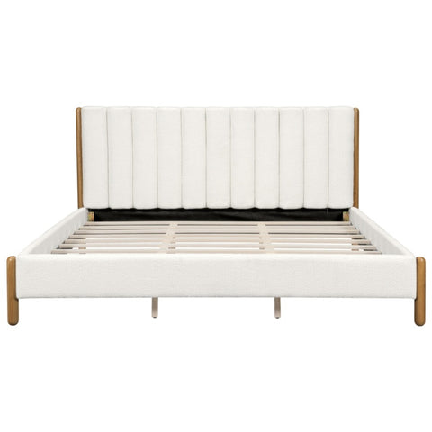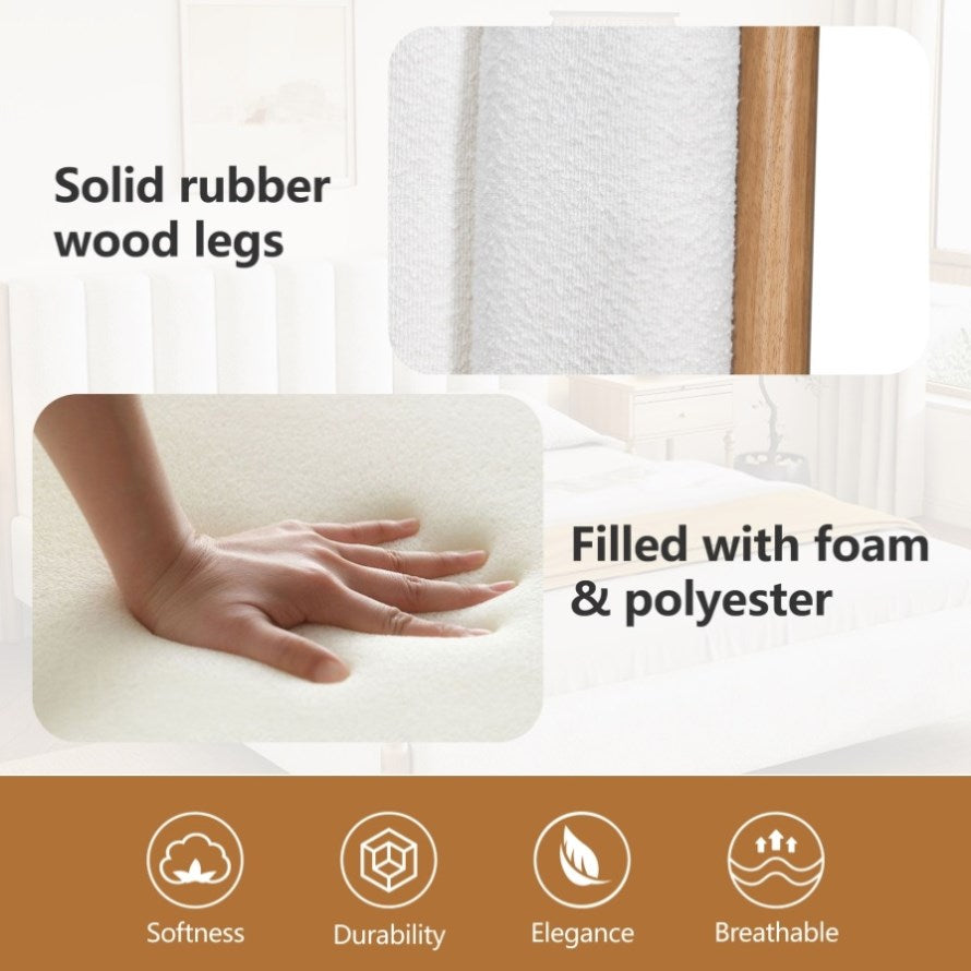 King Size Bed Frame with Boucle Upholstered Thick Headboard, Solid Wooden Legs, White N757P256984K