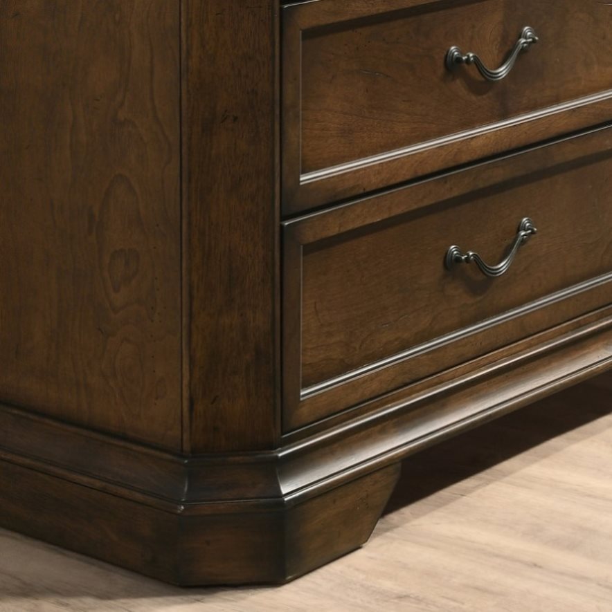 Maderne Traditional Wood 3-Drawer Nightstand, Antique Walnut