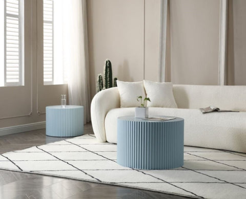 MDF Nesting Table Set of 2,Handcraft Round Coffee Table for Living Room/Leisure Area, Blue