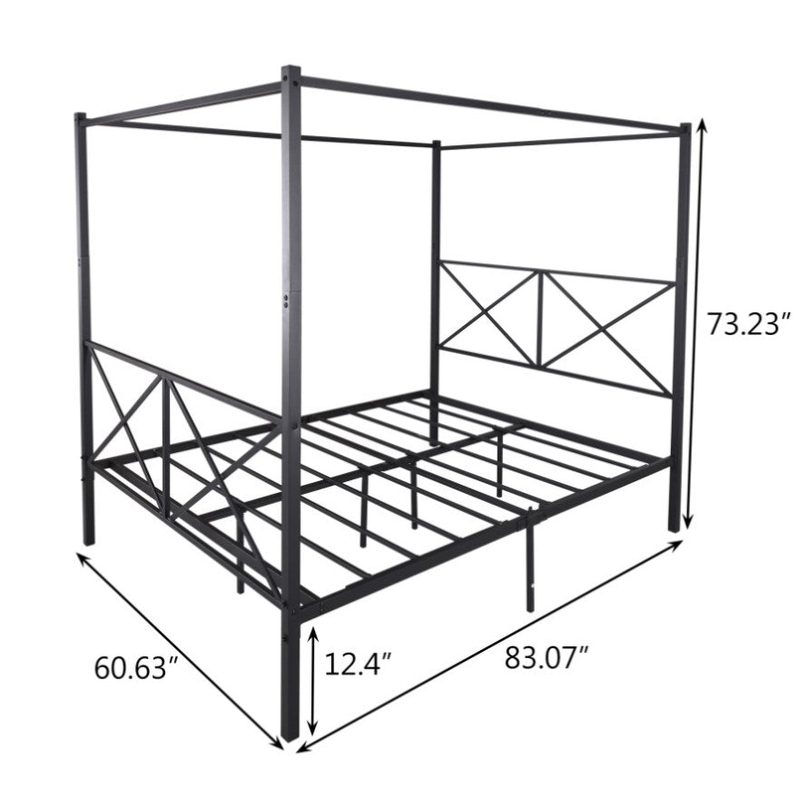 Metal Canopy Bed Frame, Platform Bed Frame Queen with X Shaped Frame Queen Black W84034643