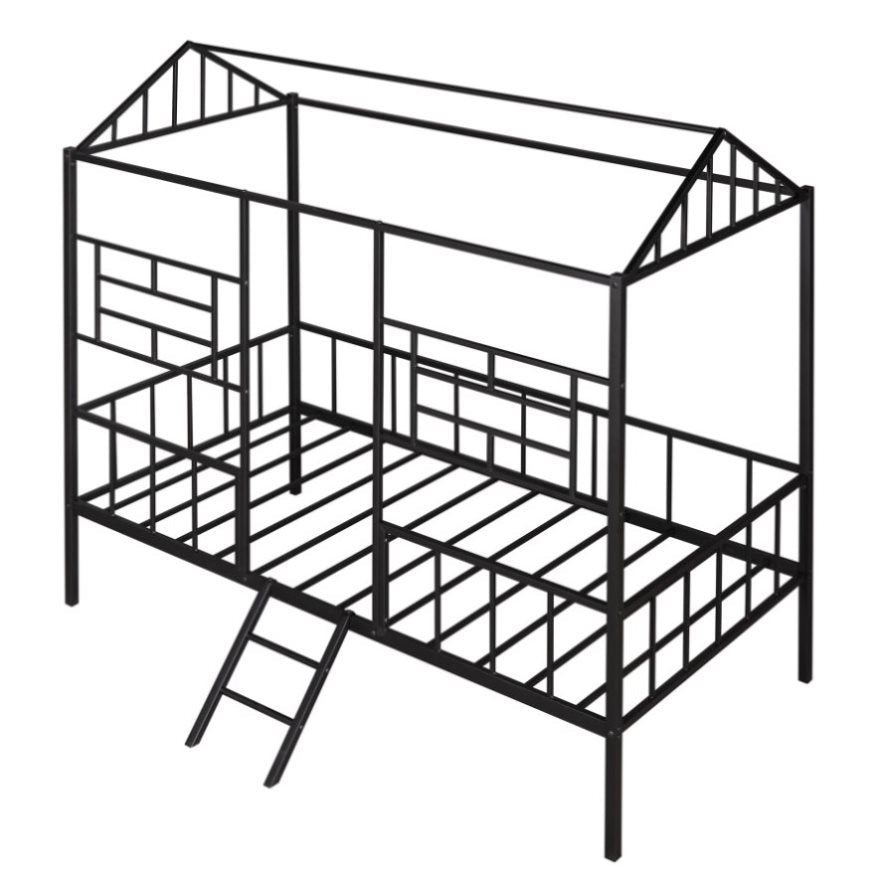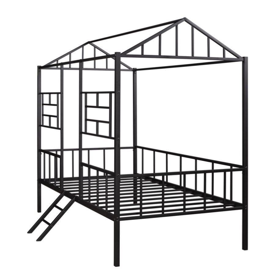 Metal House Bed Frame Twin Size with Slatted Support No Box Spring Needed Black MF289091AAB