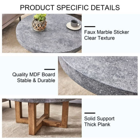 Round Table Top Design: A 31.4-inch diameter round table top is perfect for placing drinks and snacks, adding a touch of modern atmosphere to your living room.Thick Tabletop: A 2-inch thick tabletop offers a sturdy structure and strong load-bearing capacity, suitable for everyday use.