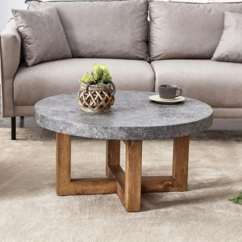This circular coffee table is made of high-quality MDF. Durable and sturdy, the crossed legs provide stability.The coffee table adopts a cross retro splicing design, which is beautiful and durable, with clear texture and natural polished edges.