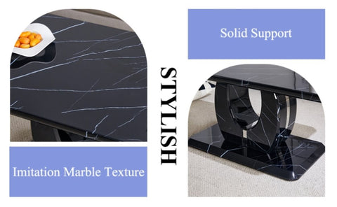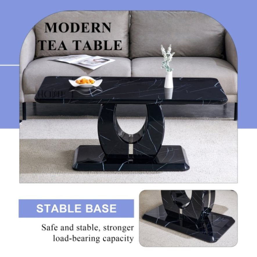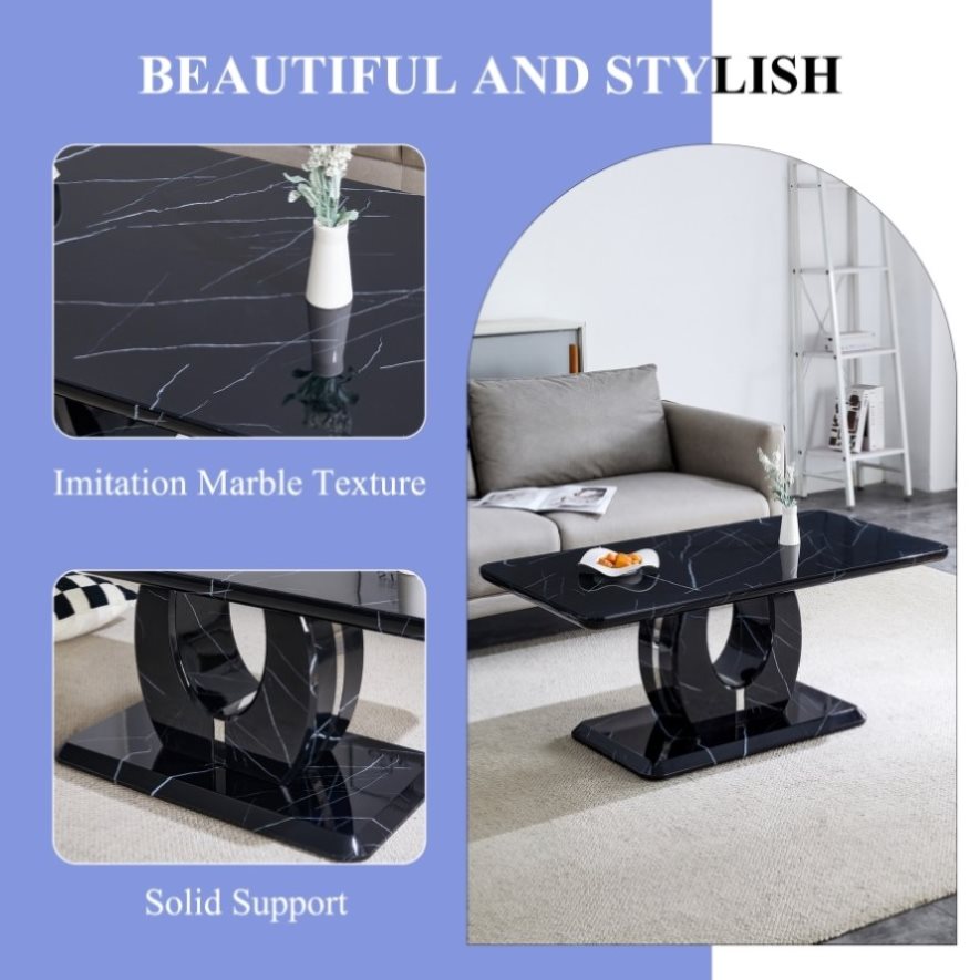 Black marble pattern sticker design: The coffee table is made of MDF material and features stickers with a black marble pattern, simple yet elegant. Silver plated decorative strip: The supporting part is decorated with silver plated decorative strips, adding a touch of luxury to the coffee table.