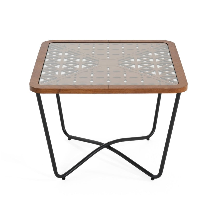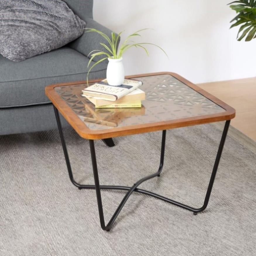 STUNNING GLASS TOP WITH GEOMETRIC PATTERN:Featuring a durable tempered glass top with an artistic geometric cut-out pattern, this table adds visual depth and a touch of sophistication while maintaining a sleek, contemporary appearance.