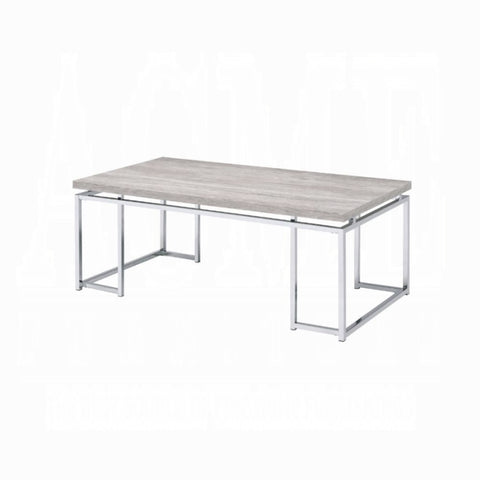 Natural Oak and Chrome Coffee Table with Metal Sled Base B062P189174