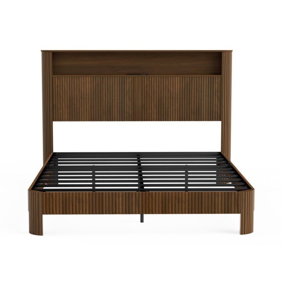 Queen Size bed frame with storage headboard, built-in charging station, wavy curved lines design, 18715926