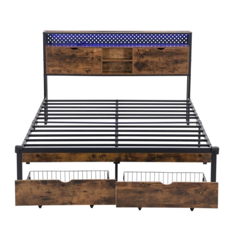 Queen Size Metal Platform Bed Frame with Wooden Headboard and with Footboard USB,Charging Station,2 W2297P236942