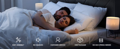 No Box Spring Needed: Designed with solid wood slats and simple assembly; mattress does not slide; suitable for memory foam or spring mattresses without a box spring