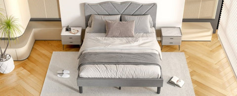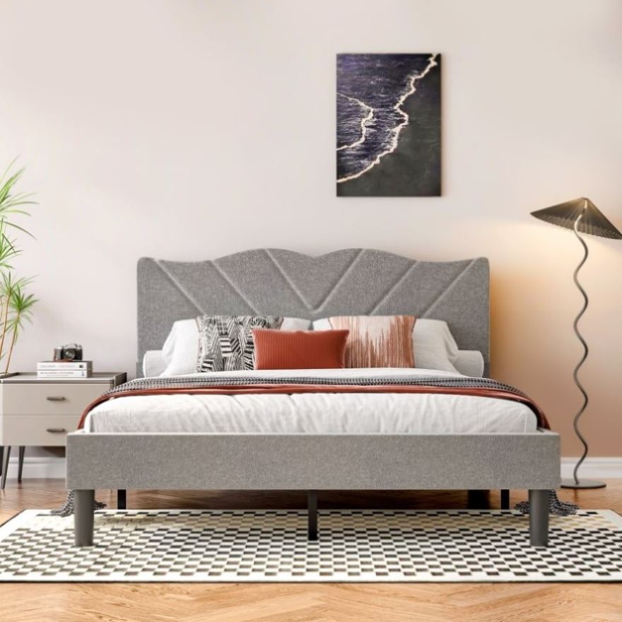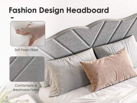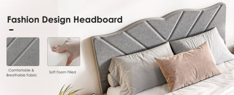 Minimalist & Noise-Free: This queen-size bed frame features a sleek, padded upholstered headboard that complements a variety of decor styles. Equipped with EVA mute bars, it effectively eliminates friction noise, ensuring a completely silent and creak-free sleeping experience. Perfect for those who value both style and tranquility