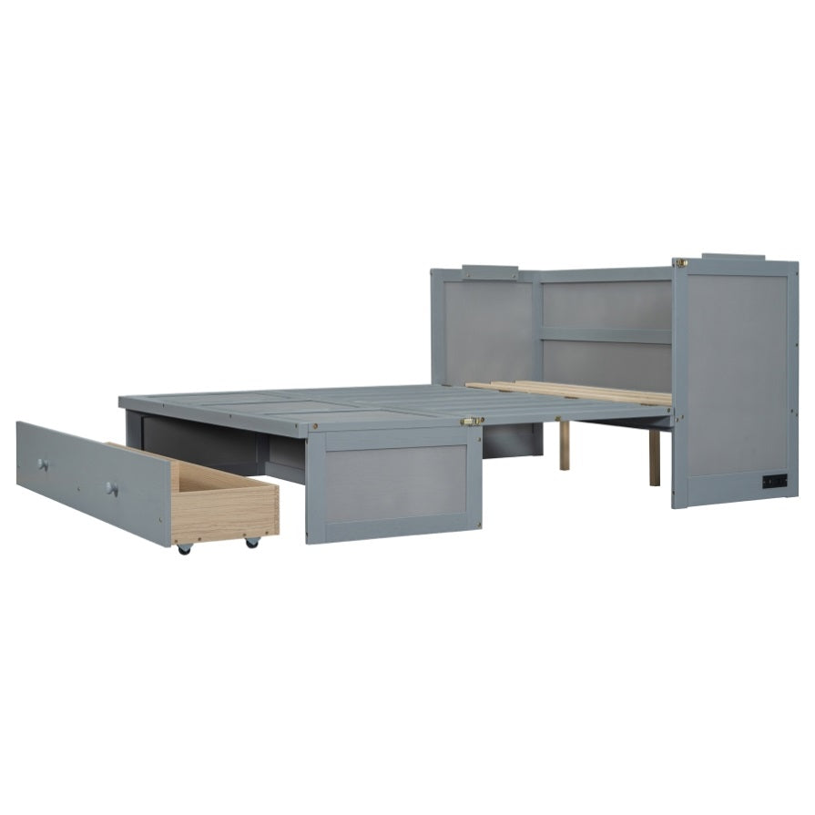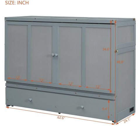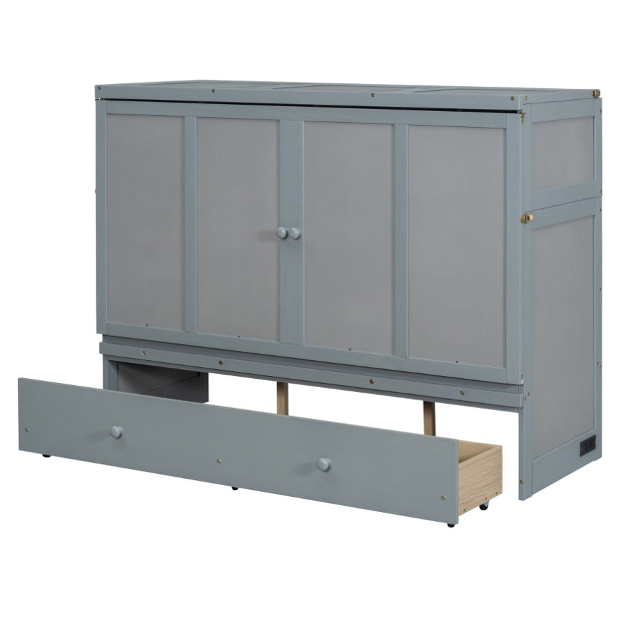 Queen Size Murphy Bed with USB Port and a Large Drawer, Gray N708P205905E