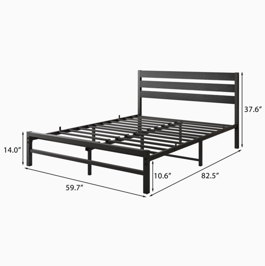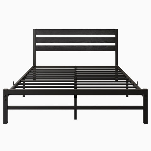 The platform bed frame is equipped with an all-metal support system, encompassing 9legs and 12robust steel slats. This ensures exceptional durability and enduring stability, as it can effortlessly accommodate a weight capacity of up to 500 pounds. The comprehensive metal construction ensures stability and reliability, making it an ideal choice for any bedroom setting.