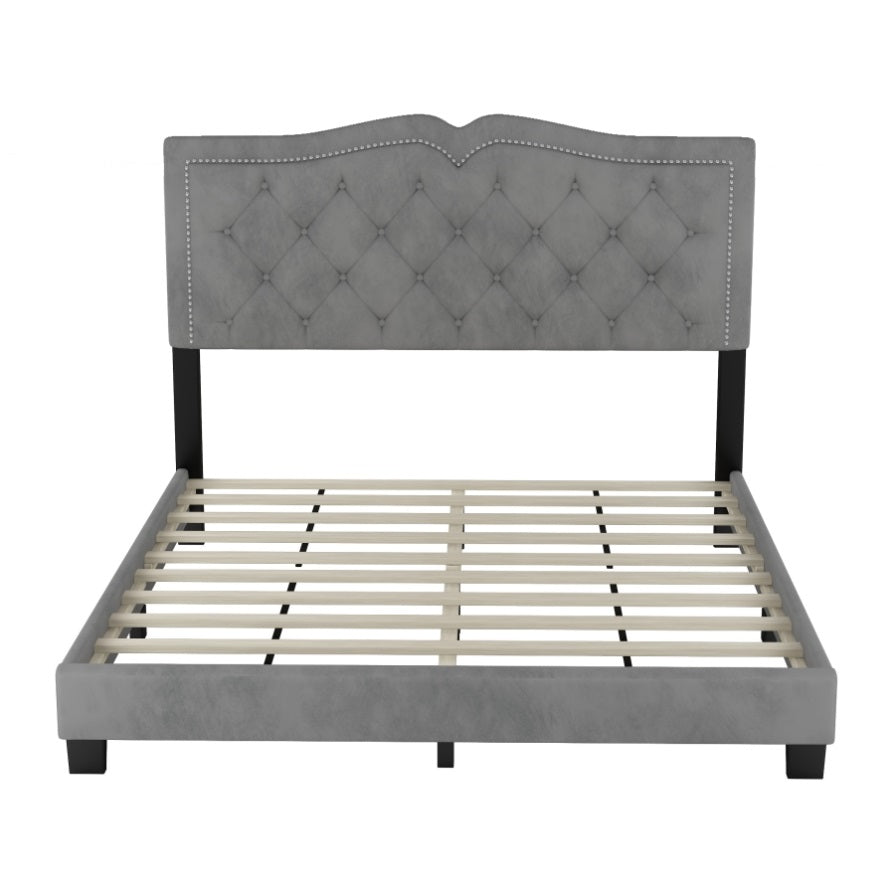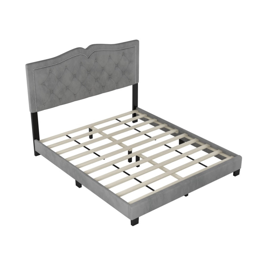 Queen Size Upholstered Bed Frame with Rivet Design, Modern Velvet Platform Bed with Tufted WF316750AAE
