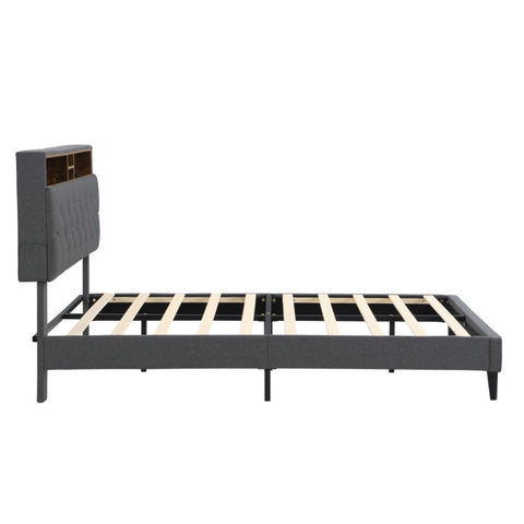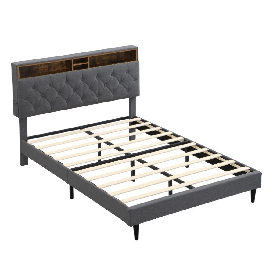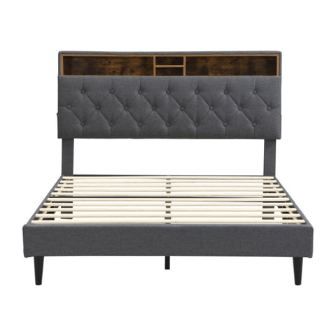 Queen-Size Upholstered Platform Bed Frame with a Modern Button-Tufted Linen Fabric Headboard,USB W311P285482