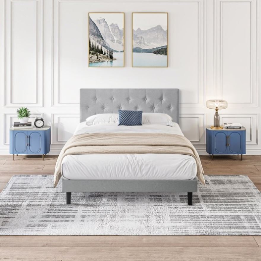 Queen Size Upholstered Platform Bed Frame with Modern Button Tufted Linen Fabric Headboard, No Box W311P197752