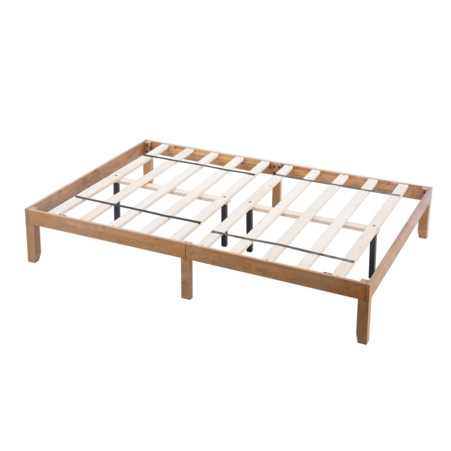 This Queen size Solid Wood Platform Bed is beautifully simple and works well with any style of home décor. This Platform Bed is supportive and stylish and comes with 10 Slats - NO Box Spring Required. Durable Solid Wood Construction: This Queen size Platform Bed Frame is made with real solid wood for stability and durability No Box Spring Needed: Crafted from solid wooden slats, that's no box spring required for this platform bed 4 Center Supportive Legs: With 4 center supportive legs, this sturdy platform bed supports a maximum weight capacity of 650 lbs ~ 700 lbs Simply elegant and durable design not meant for use with a headboard or footboard Easy to Assemble: All tools needed to assemble are provided