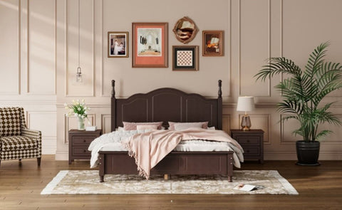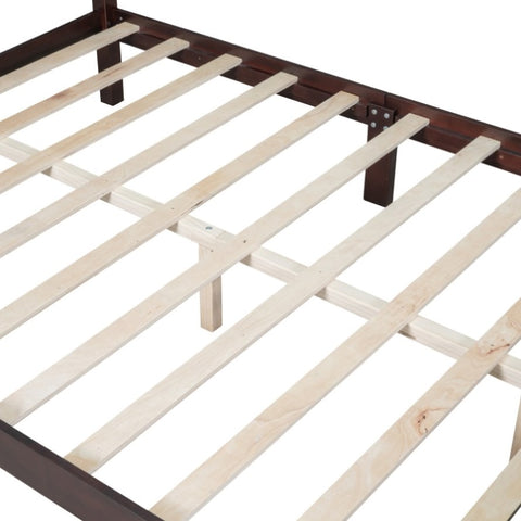 Queen Size Wood Platform Bed Frame,Retro Style Platform Bed with Wooden Slat Support,Dark Walnut WF308185AAD