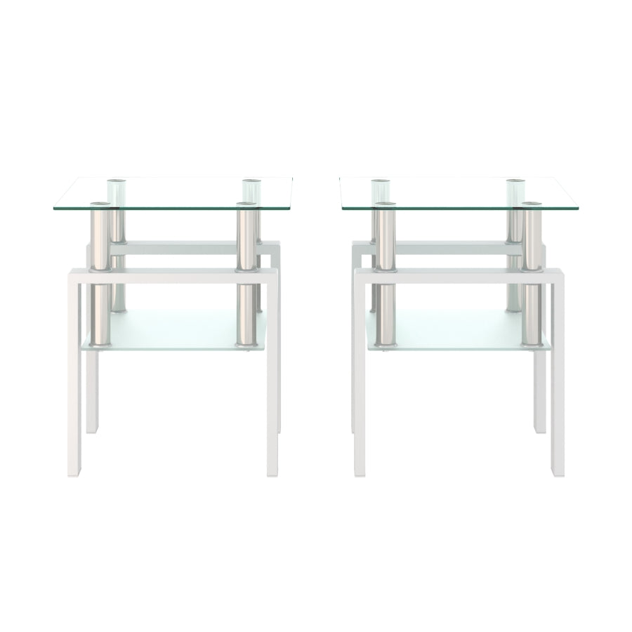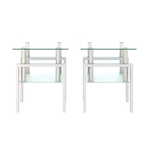 Set of 2, Modern Tempered Glass Tea Table Coffee Table End Table, Square Table for Living Room, W241104208