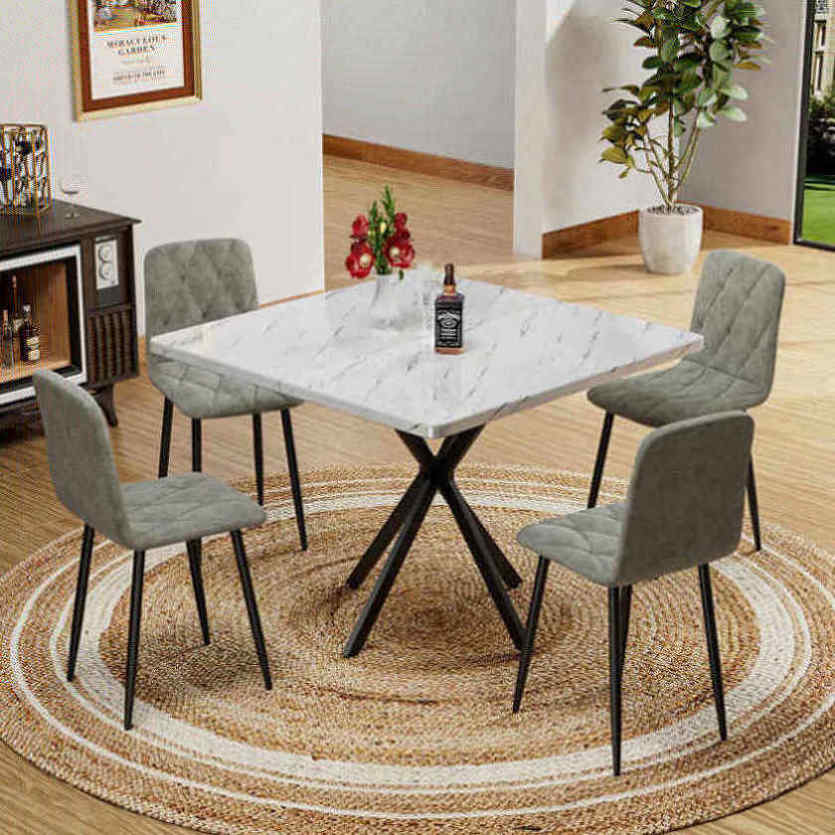Square Dining Table: This square kitchen table is crafted from thicker MDF material, thick desktop Board can be used for a long time without deformation. Four carbon iron legs support the stable table. The bottom is equipped with non-slip rubber pads to protect the floor and maintain stability.