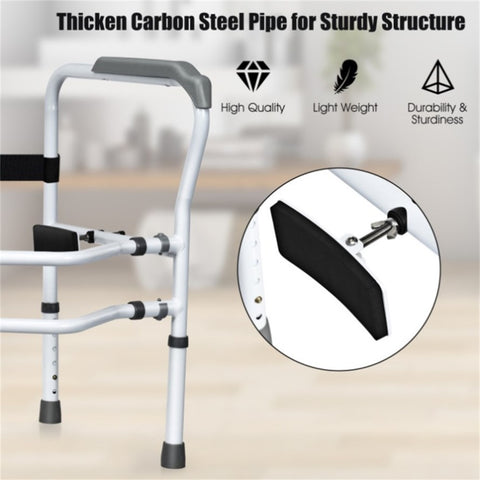 ● In Sitting and Rising: The free-standing bathroom safety rail can provide stable support and great convenience for users who need to use the toilet. The toilet armrests can help the elderly, the disabled, recovered patients or people with temporary mobility difficulties to sit or stand easily.