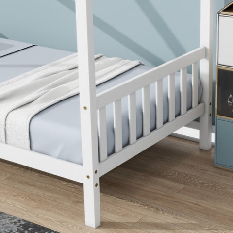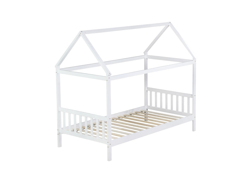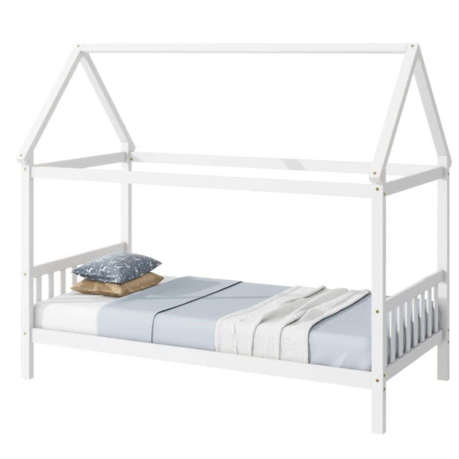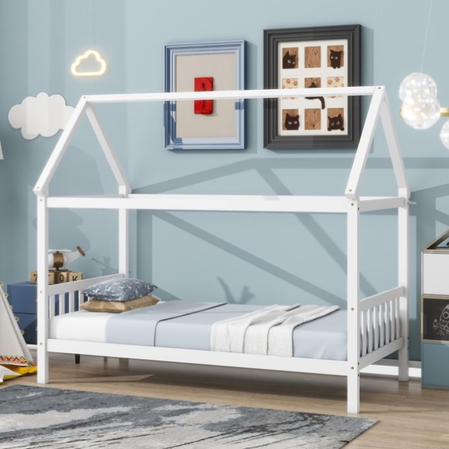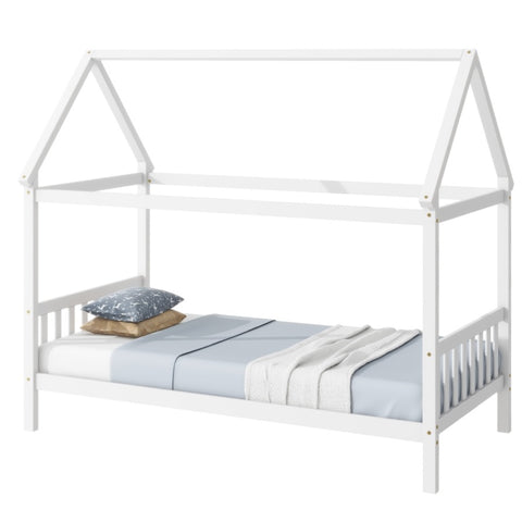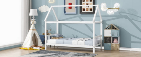 Twin House Bed with Headboard and Footboard, Twin Rubber Wood Bed with House Frame,White W504P225951