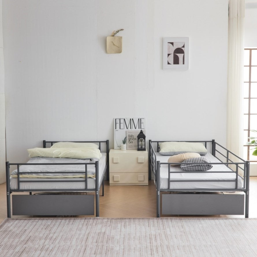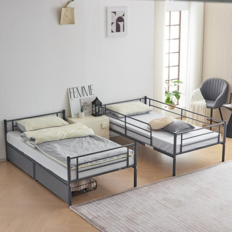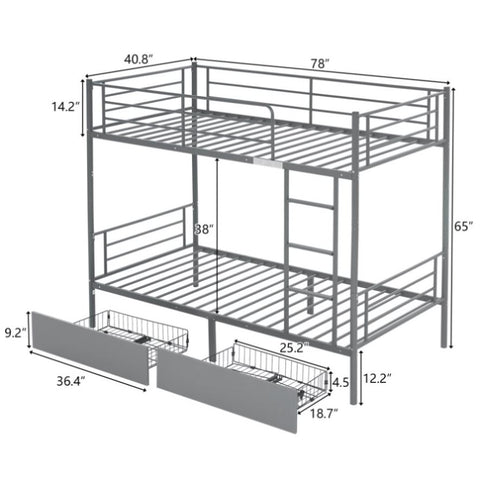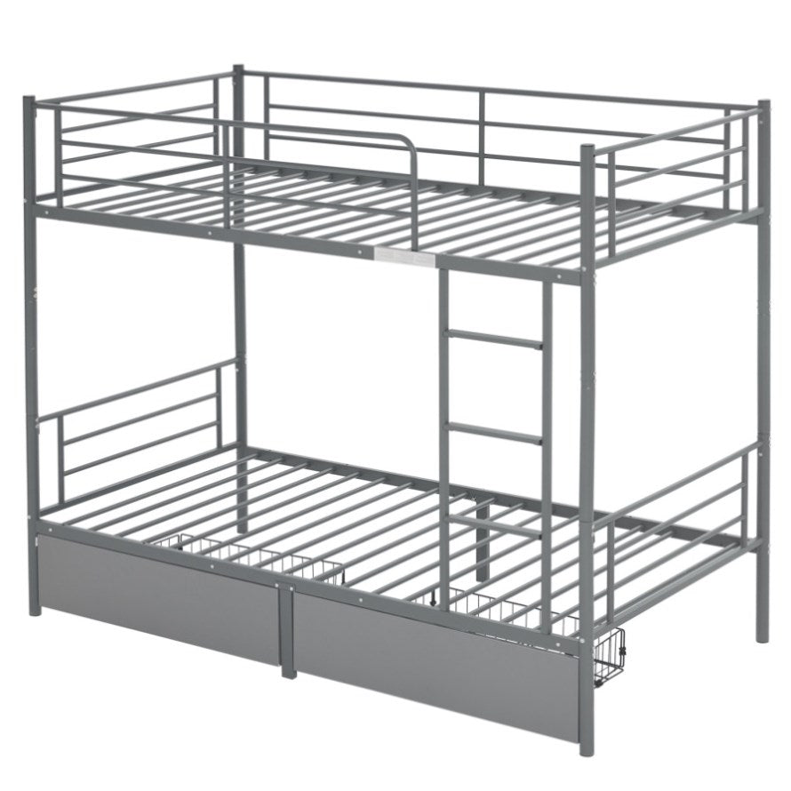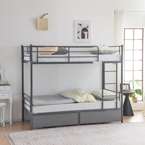 Twin Over Twin Convertible Bunk Bed with 2 Storage Drawers, Metal Bunk Bed Can be 58532352
