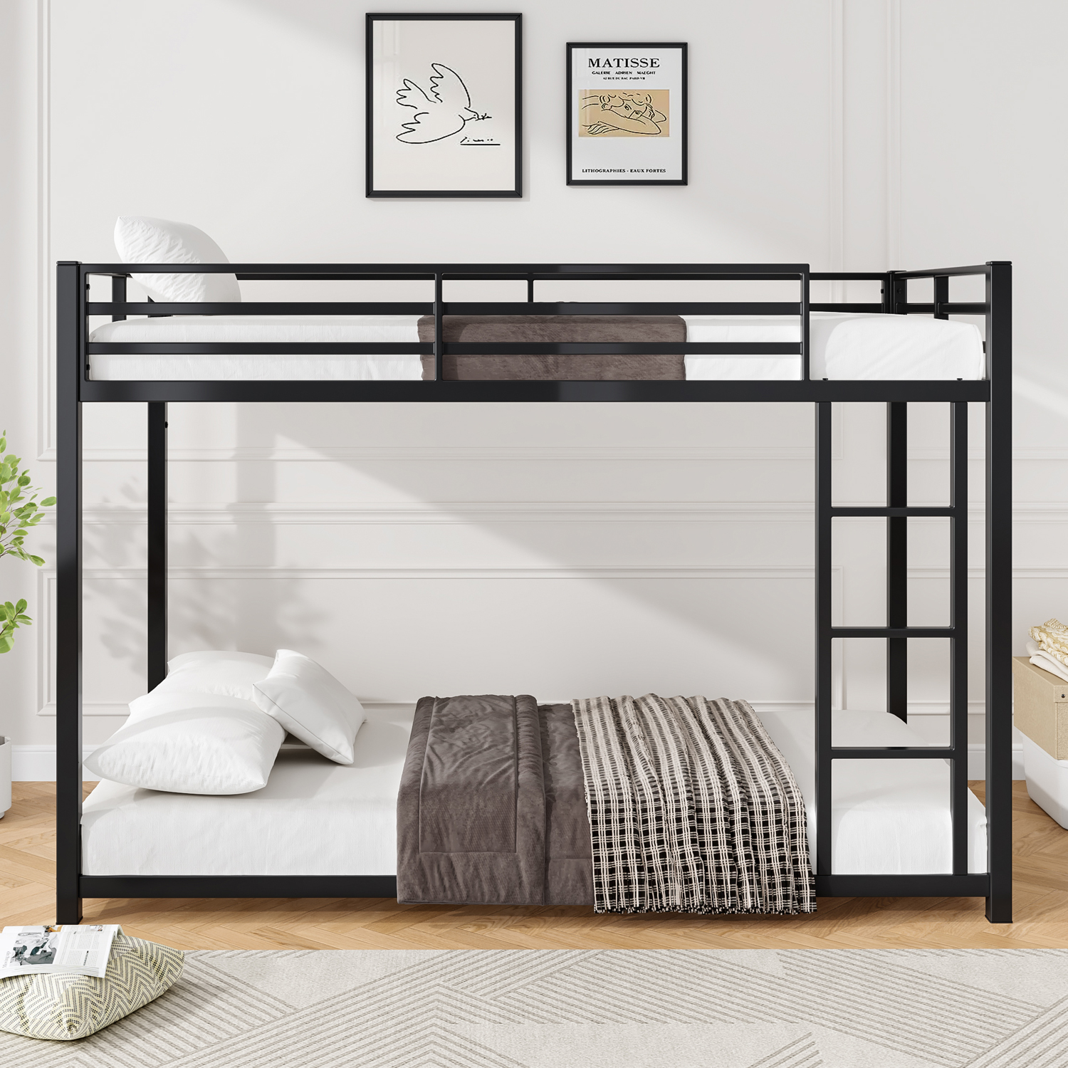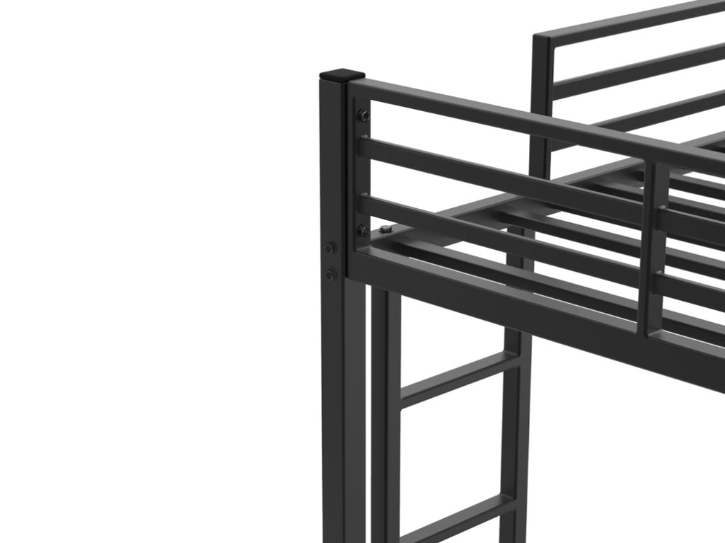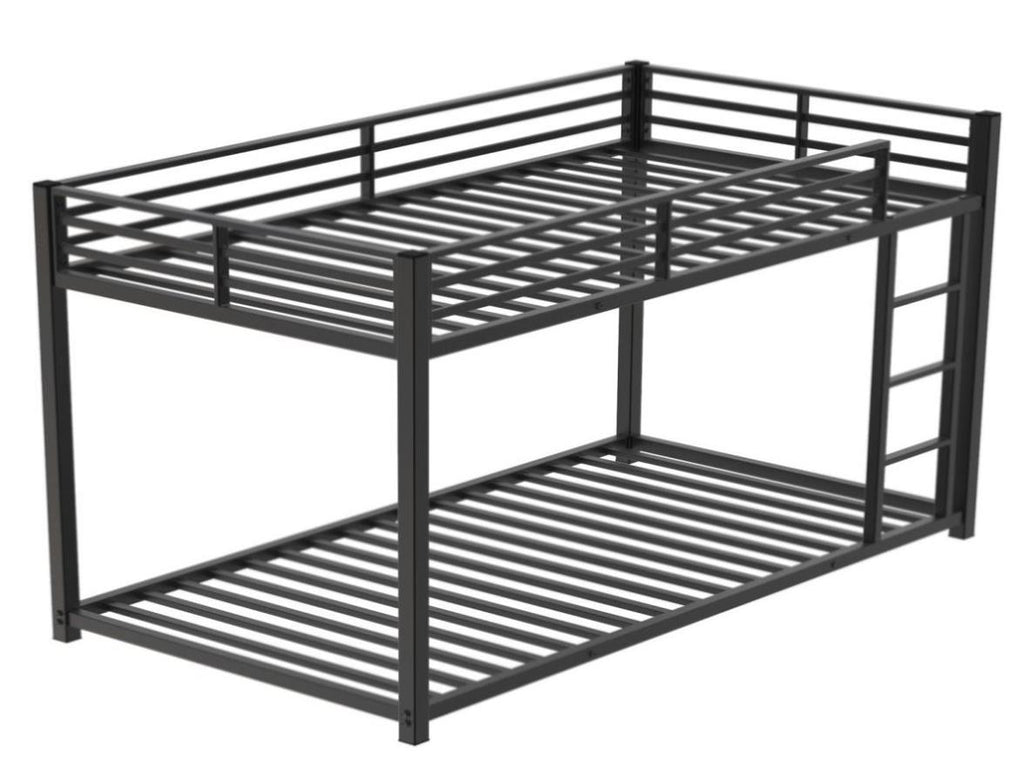 Twin Over Twin Metal Bunk Bed, Low Bunk Bed with Ladder, Bed Frame,Black, Sturdy Steel Construction, 80743359