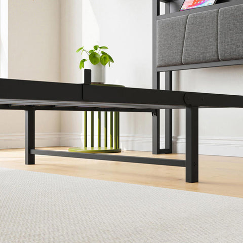 This bed frame built -in 2 standard power outlet & 2 USB Ports, it is very convenient for you to charge your electronics and use light to read within easy reach. 3.9" wide storage headboard provides you with extra place to store phone, photo, glasses, clock and books within easy reach.