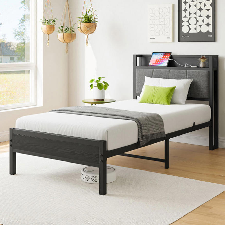 Twin Size Bed Frame, Storage Headboard with Charging Station, Solid and Stable, Noise Free, No Box 80586204