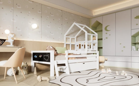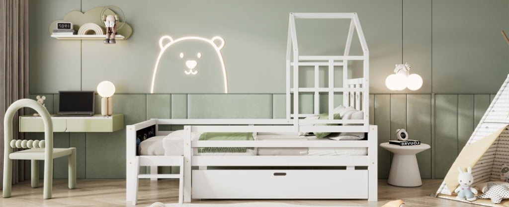 MULTIFUNCTIONAL STORAGE: The bed is 12.4 inch off the ground, with an easy to clean underbed space with no cleaning dead ends, and a large drawer with handles and rollers underneath the bed, which is sized to store your child's favorite toys. This bed maximizes space and helps develop your child's storage habits.