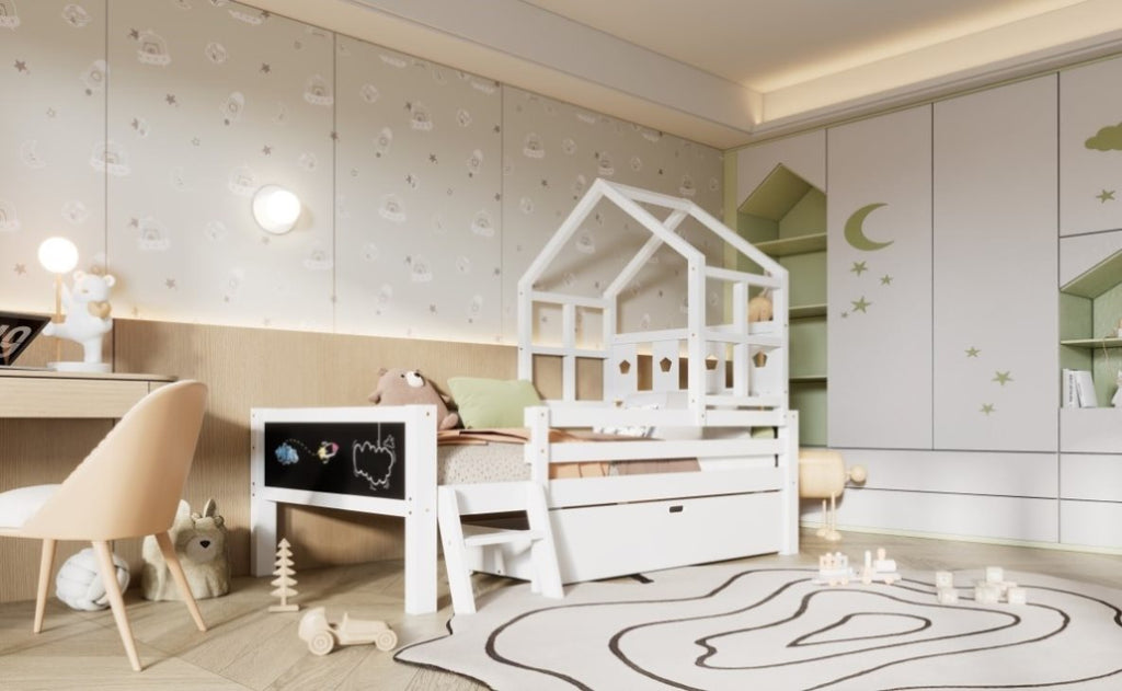 DESIGNED FOR SAFETY: The bed is surrounded by guard rails to ensure children's safety while sleeping, preventing them from falling, and the roof shape provides a sense of security. Climbing ladder height of 12.4 inch ensures fun for your child while keeping them safe when climbing the ladder.