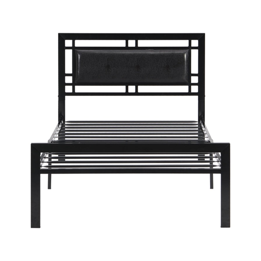 Twin Size metal bed Sturdy System Metal Bed Frame, Modern style and comfort to any bedroom, black W2297P347753