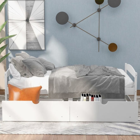 The simple and exquisite style also comes with two drawers. It is a very practical single-layer bed. This bed is a good choice in the living room and bedroom. Two large drawers can hold a lot of items and are placed under the bed, saving a lot of space. Drawers with wheels can be placed on both sides of the bed. High-quality materials can make this bed long-lasting and very durable.