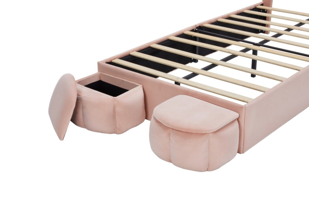[Extra Storage Space] There are 2 small storage stools at the end of the bed, where you can store toys or bedding. The lid protects against dust very well.