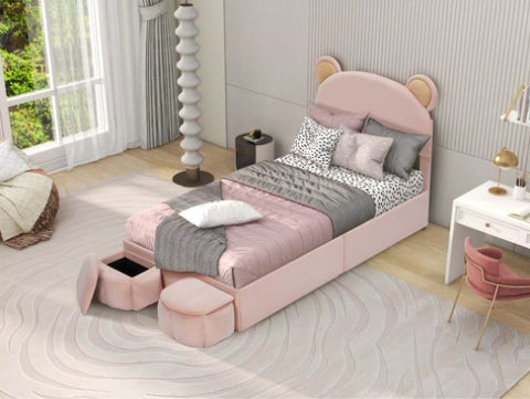 Designed with an adorable bear-shaped headboard, this bed frame not only embody a sense of style to your bedroom but also provides comfortable back support. The headboard enhances the overall aesthetic while offering a cozy spot to sit up and read or watch TV.