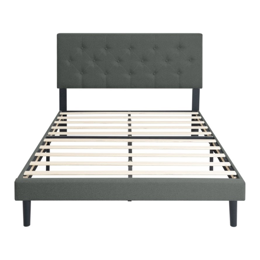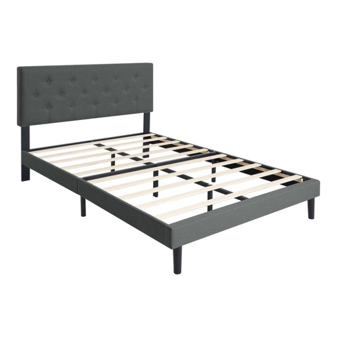 Twin Size Upholstered Platform Bed Frame with Modern Button Tufted Linen Fabric Headboard, No Box W311P195323
