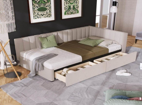 This classic modern design sofa bed deserves your own. Storage drawers, semi-closed design make your home unique. Sturdy wood frame construction and wood slat system add extra stability and safety. Get the most storage space with an upholstered daybed with two drawers, perfect for organizing anything from clothes and linens to toys and games. This sofa bed is designed with clean silhouettes and elegant tones. It goes well with all styles of home decor and completes the look of any bedroom.